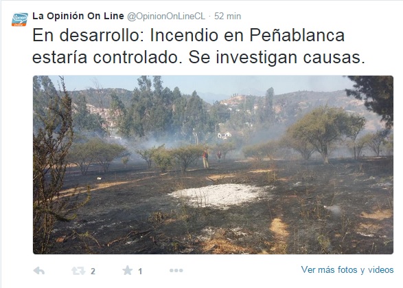 Tal como informáramos a través de nuestra cuenta oficial de Twitter @OpinionOnLineCL , a las 18:28 hrs. el incendio se encontraba controlado, y la Intendencia regional levantaba la alerta roja declarando alerta amarilla.