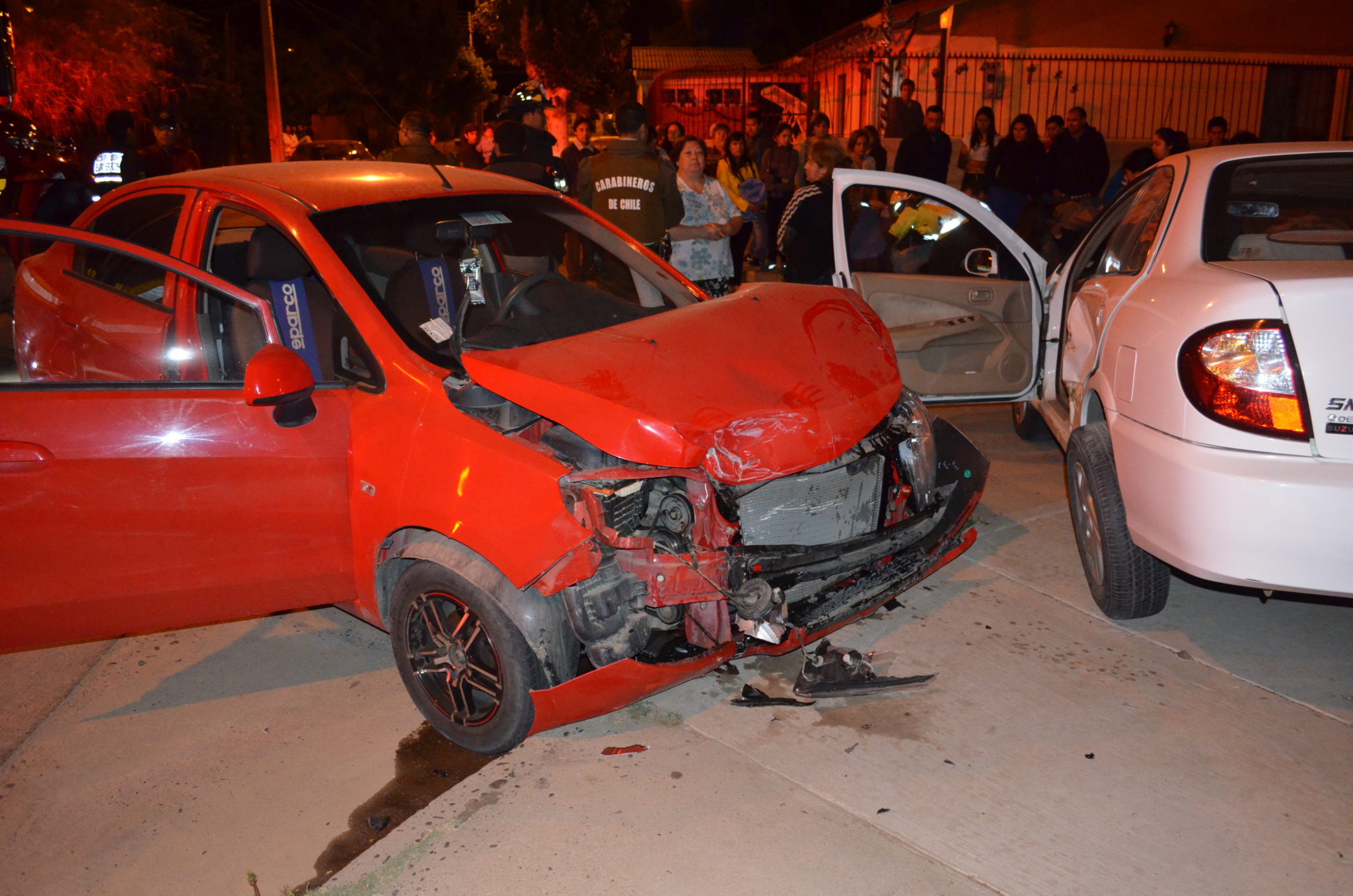 Según información extraoficial entregada por testigos, el vehículo SM3 blanco, Patente YV7343 habría cruzado la intersección sin respetar la señal de Ceda el Paso, siendo impactado por el vehículo Chevrolet Sail patente DTBJ41, destruyendo posteriormente la reja de la casa esquina.