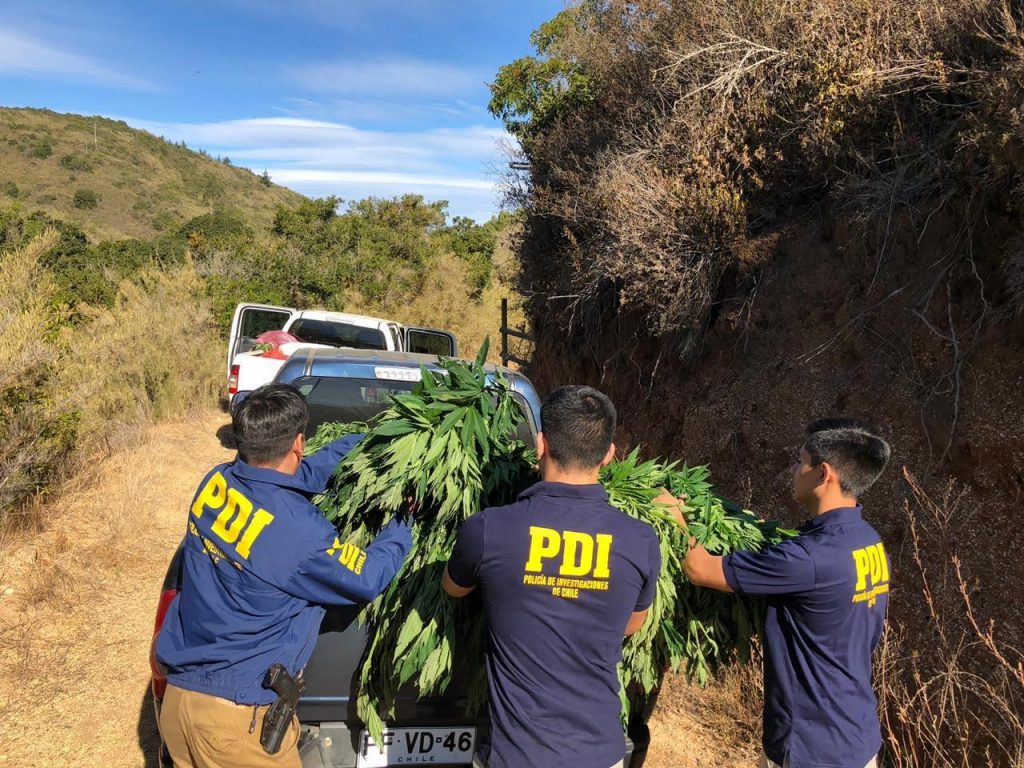 En la oportunidad, los oficiales de la PDI hicieron un recorrido por diversos sectores de la comuna, finalizando con la incautación de 941 plantas del tipo cannabis sativa, ubicadas en la quebrada San Gerónimo, a 10 kilómetros al oriente de San Alfonso del Mar en Algarrobo.