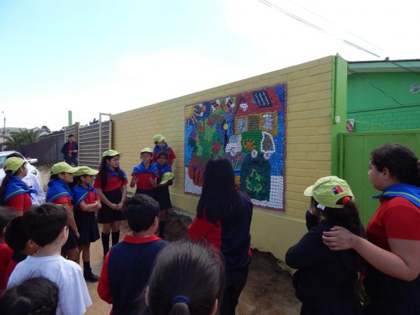 Alumnos de Quilpué crearon murales con tapitas de plástico recicladas