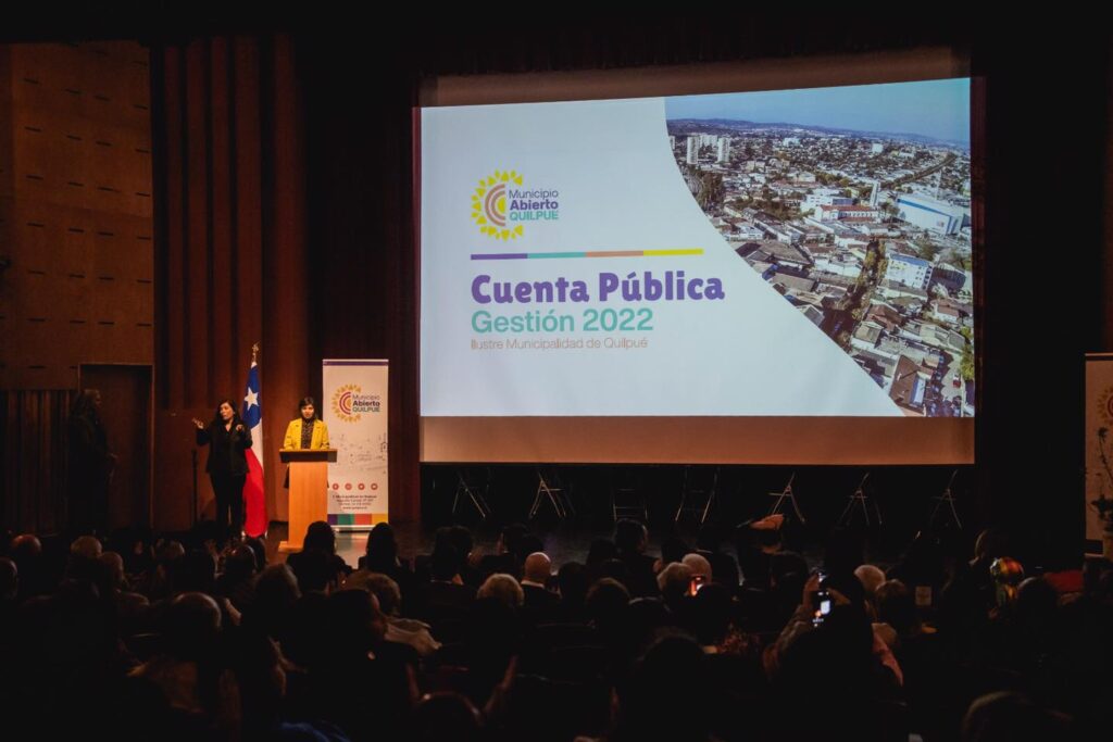 En dependencias del Teatro Municipal Juan Bustos Ramírez se llevó a cabo la ceremonia de rendición de la Cuenta Pública 2022 de la Municipalidad de Quilpué, instancia que estuvo liderada por la alcaldesa Valeria Melipillan y el Concejo Municipal. En la instancia se dieron a conocer los avances e iniciativas concretadas durante el segundo año de administración del Municipio Abierto.