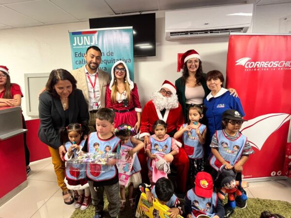 En el marco del cierre de la Campaña de Navidad liderada por Correos Chile, la directora regional (s) de la JUNJI , Layleen González, junto a la Seremi de Gobierno, María Fernanda Moraga fueron las encargadas de recibir a los párvulos del jardín infantil familiar “La Laguna”, ubicado en la comuna de Valparaíso.