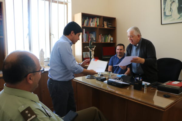 El gobernador Christian Cárdenas y el jefe de los Servicios de Carabineros de Marga Marga, comandante, Óscar Alarcón, se reunieron con el padre Mario Liesperguer para afinar los detalles de la tradicional peregrinación.