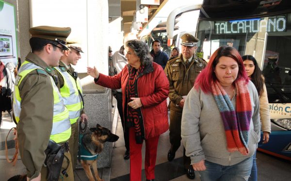 La alcaldesa Virginia Reginato junto al seremi de Transportes, Gerard Oliger, representantes de la Comisión Nacional de Seguridad de Tránsito (CONASET) y Carabineros realizaron una fiscalización de las medidas de seguridad que deben cumplir los buses interurbanos para resguardar la seguridad de los pasajeros en el terminal rodoviario. Además entregaron información sobre el autocuidado ante el aumento de visitantes este fin de semana largo en Viña del Mar.