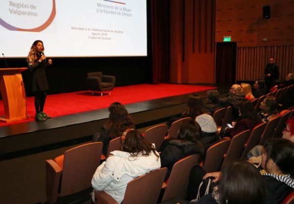 Cerca de un centenar de mujeres dirigentes de la región de Valparaíso asistieron al teatro Juan Bustos de Quilpué a un conversatorio relativo a la violencia contra la mujer, sus causas y efectos, y el camino hacia la denuncia.
