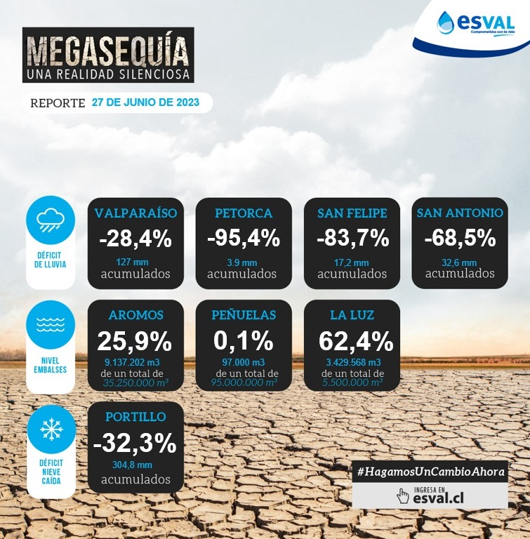 El ejecutivo agregó que estamos en una mejor condición que en 2022, pero “aún estamos muy lejos de superar la escasez hídrica que nos afecta, por lo que seguimos desplegando inversiones para asegurar la continuidad del suministro. Sólo este año destinaremos más de 12,5 millones de dólares en medidas para seguir enfrentando la sequía”.