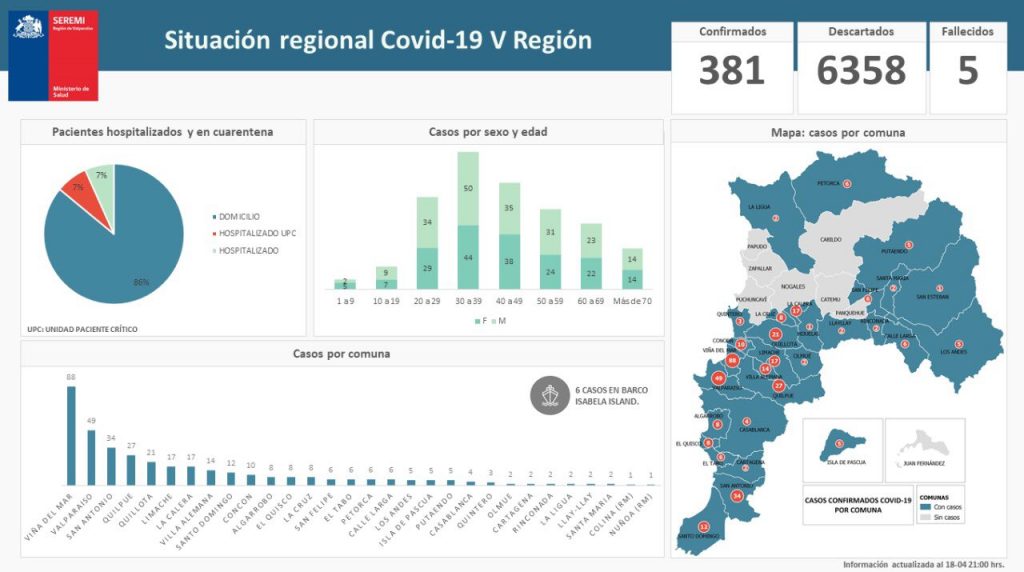 En cuanto a comunas, el desglose es el siguiente: 6 de Viña de Mar, 5 de Valparaíso, 3 de La Calera, 3 de Quillota, y 1 caso en las comunas de Calle Larga, El Quisco, Quilpué, San Antonio y Villa Alemana.