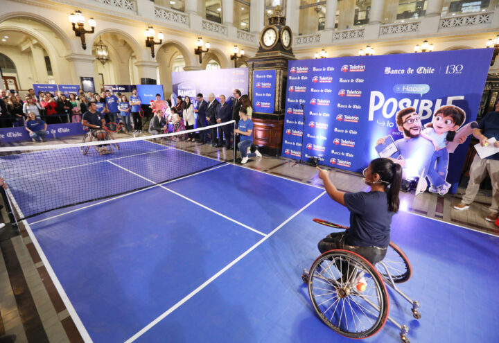 Este año, en que Teletón cumple 45 años, el evento se realizará en una ventana entre los Juegos Panamericanos de Santiago 2023, que finalizaron el domingo, y los Juegos Parapanamericanos, que se inician la próxima semana. Por ello, Banco de Chile se empapó de este ambiente deportivo y montó como escenario para su lanzamiento una cancha de tenis a un costado de su icónico reloj. En ella, los destacados tenistas en silla de ruedas Macarena Cabrillana (número 1 de Chile y 19 a nivel mundial) y Alexander Cataldo (número 1 nacional, 13 del ranking planetario) dieron una entretenida exhibición. En la antesala de su participación en la cita deportiva, ambos jugadores mostraron su habilidad, sentido del humor y entregaron a los asistentes un mensaje de esperanza de cara al inicio de la cruzada solidaria. Tanto Cabrillana como Cataldo (ambos apoyados por Banco de Chile) fueron pacientes de Teletón.