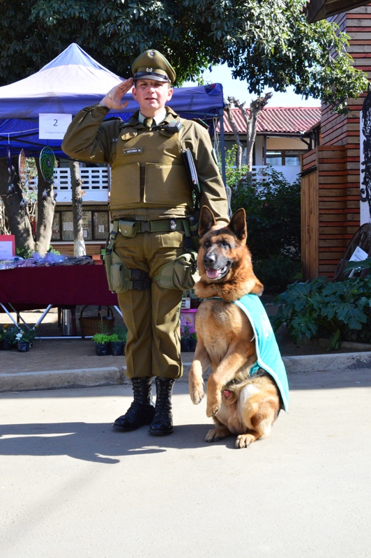 Esta mañana estuvo en nuestro municipio donde se desarrolla la Expo Mujer, el cabo primero Luis Messina, acompañado de su perro “Don Ramón – Von Faaspe” un hermoso ejemplar de pastor alemán, que nos brindó su saludo marcial, ganándose la admiración de las expositoras. El cabo Messina nos señaló que él proviene de la Cuarta Comisaría de Quillota, y que ha sido muy grato patrullar las calles de Olmué.