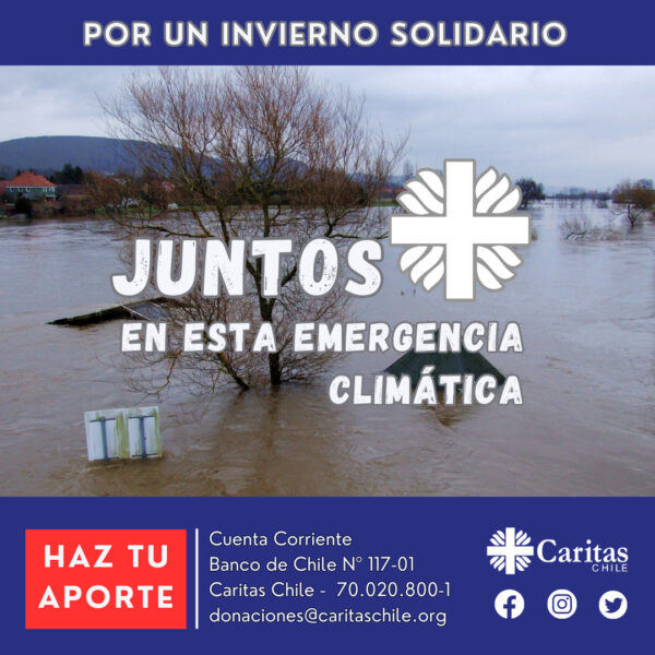 Por ello, Caritas Chile lanza una nueva Campaña Nacional “Por un invierno solidario: Juntos en esta emergencia climática”, poniendo a disposición la cuenta corriente del Banco de Chile 117-01 para recibir aportes en dinero que permitirán contribuir en los procesos de respuesta humanitaria inmediata como ropa, frazadas, alimentos, agua, calefacción, y en procesos de acompañamiento y recuperación de sus viviendas y medios de vida.
