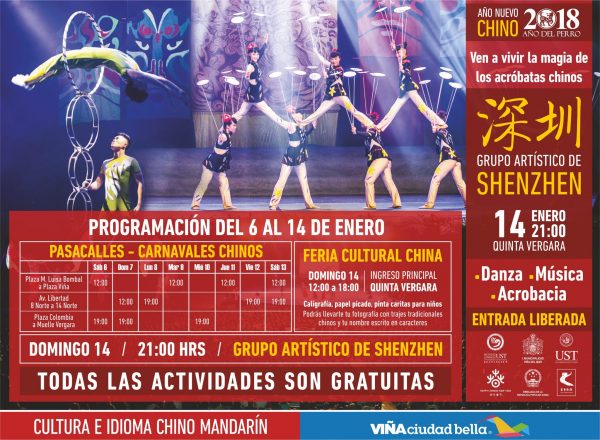 Este 14 de enero, el escenario más importante de Sudamérica recibe al grupo artístico de Shenzhen, quienes presentarán un colorido espectáculo llamado “Al Sur del Sur”, que destaca por exhibir variadas muestras de danza, ópera, música y acrobacia del gigante asiático.