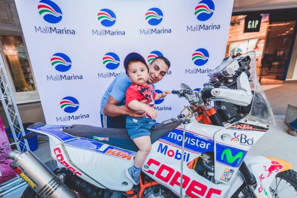 Francisco “Chaleco” López llegó con moto incluida a Mall Marina este pasado miércoles. El piloto nacional se encuentra en la ciudad en el contexto de la competencia de FIM International Six Days Of que se está celebrando por estos días.