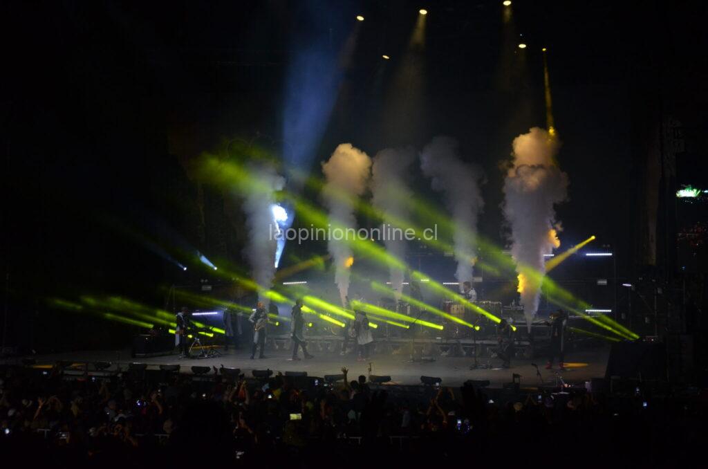Un momento destacable, además de la excelente presentación musical y audiovisual, fue cuando saludaron a bomberos de distintas localidades y finalmente a Bomberos de Viña del Mar, especialmente por el trabajo desarrollado en la catástrofe ocurrida hace algunas semanas en la ciudad jardín. El público simplemente explotó en aplausos y vítores en señal de agradecimiento y reconocimiento con la institución.