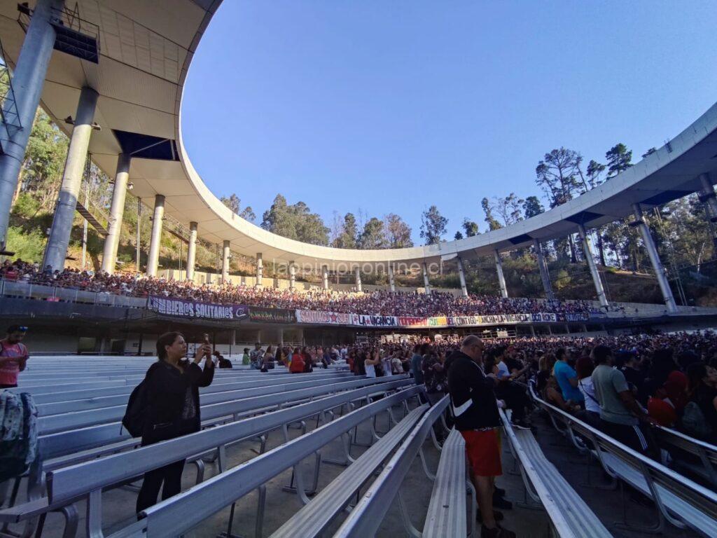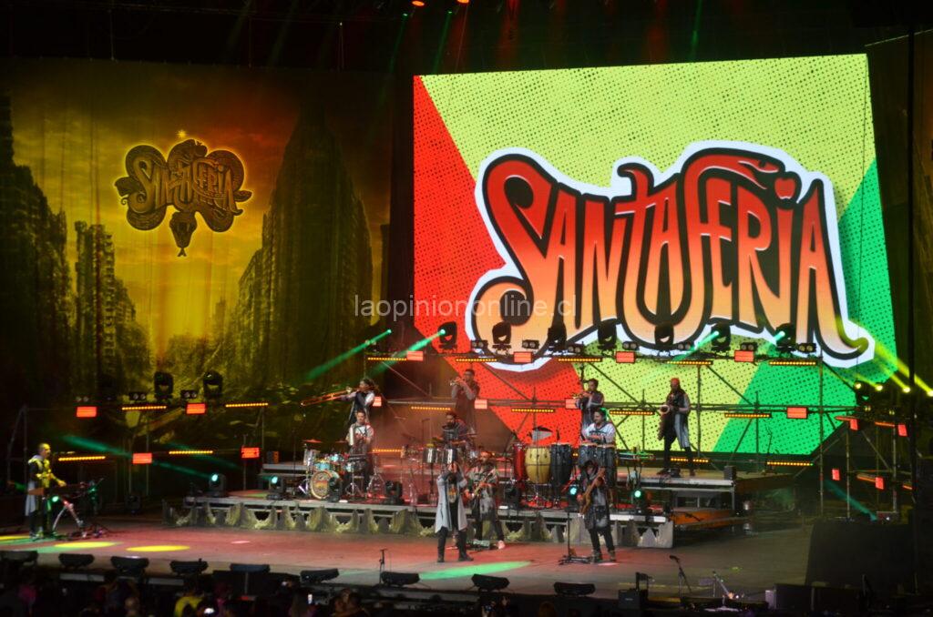 Después del intermedio, a eso de las 21:20, apareció la banda nacional “Santa Feria” con una puesta en escena de primer nivel y un show lleno de luces y material audiovisual. Iniciaron su presentación con “Sácate Uno” cuando la Quinta Vergara estaba prácticamente al limite de su capacidad de espectadores.
