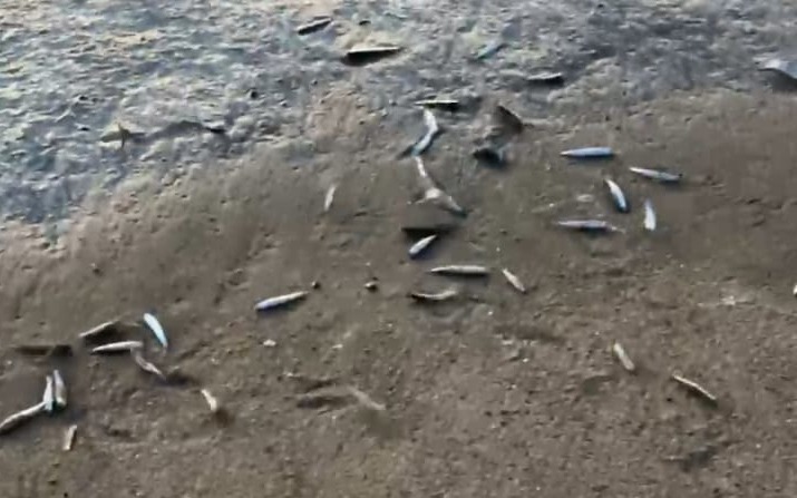 Un fenómeno ocurrió esta tarde en la mencionada playa, cuando cientos de peces literalmente arrancaron del agua para morir en la arena.