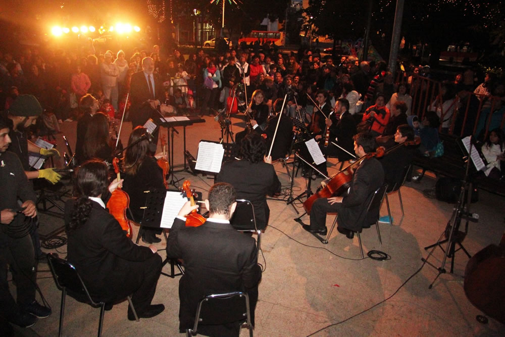 A la espera de la llegada de la caravana, frente al pesebre, se desarrolló un programa que incluyó una selección de villancicos folklóricos navideños a cargo de la agrupación Santa Cecilia y temas de gran popularidad interpretados por la Orquesta Marga Marga, que dirige el maestro Luis José Recart.