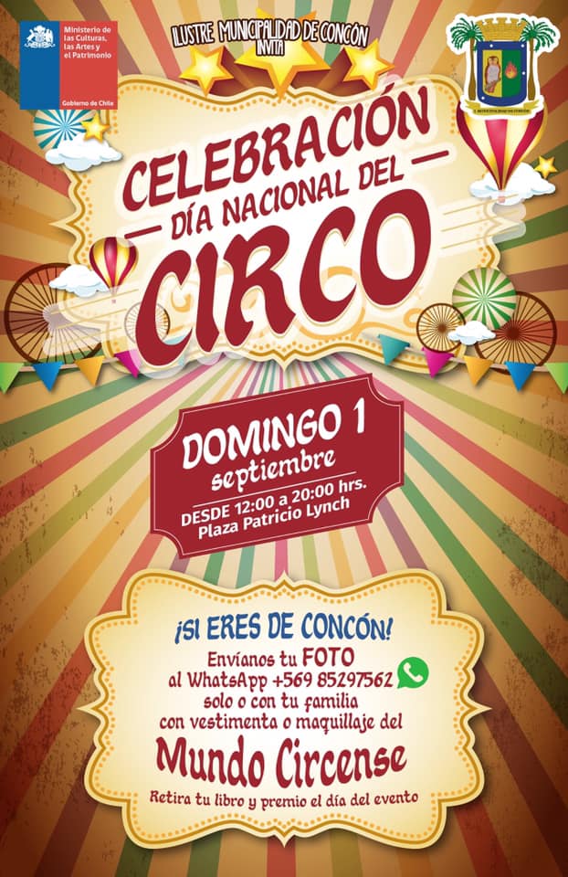 Con el fin de promover el evento es que el municipio hace un llamado a los vecinos a participar de la iniciativa, ya que al enviar tu foto solo o con tu familia con vestimenta o maquillaje del mundo circense al fono de WhatsApp +56985297562; podrás retirar tu libro de regalo y un premio el día del evento.
