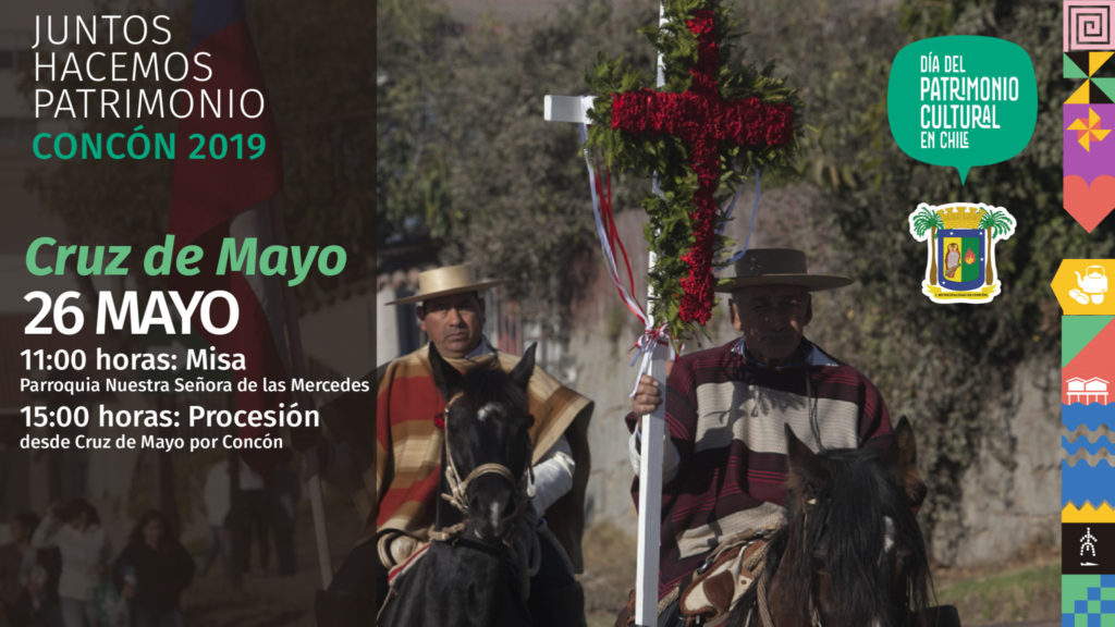 Por último, en el marco del rescate del patrimonio inmaterial, se realizará la fiesta tradicional Cruz de mayo, la cual tendrá lugar el día domingo 26 de mayo con una misa en la Parroquia Nuestra Señora de las Mercedes junto a las agrupaciones de bailes chinos de Concón y de la región a las 11.00 horas, para luego iniciar una procesión por Concón a las 15.00 horas teniendo como punto de inicio la Cruz de Mayo, altura calle Maroto con calle 11.
