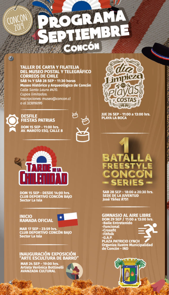 Un nutrido programa para el mes de septiembre ha estado preparando la el municipio de Concón en el mes de septiembre para celebrar las tradicionales Fiestas Patrias.