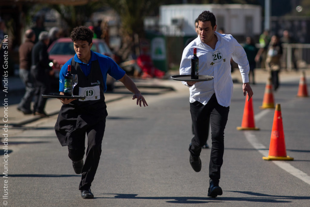 Para ganar, los competidores debieron recorrer más 250 metros la mañana de este jueves 08 de agosto en la tradicional carrera por convertirse en el garzón más ágil de la Capital Gastronómica de Chile.