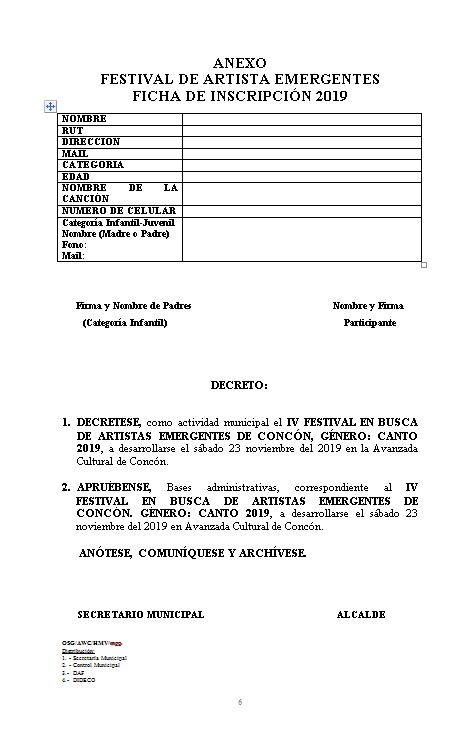 La Ilustre Municipalidad de Concón entregó las bases del IV Festival de Artistas Emergentes género canto.