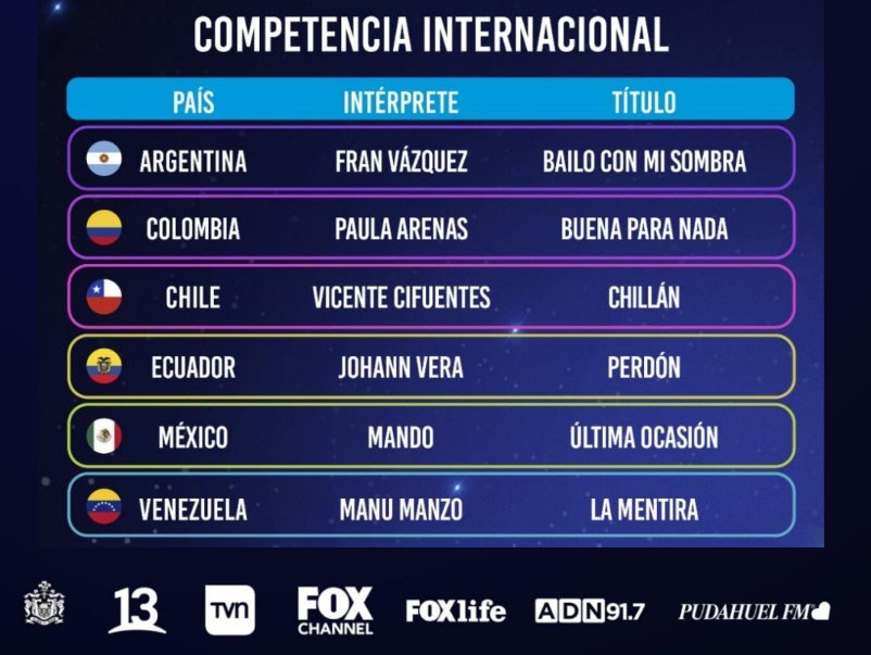 El pasado martes, se dieron a conocer las canciones que competirán en la XLI del Festival Internacional de Viña del Mar tanto para las categorías Internacional y Folklórica.