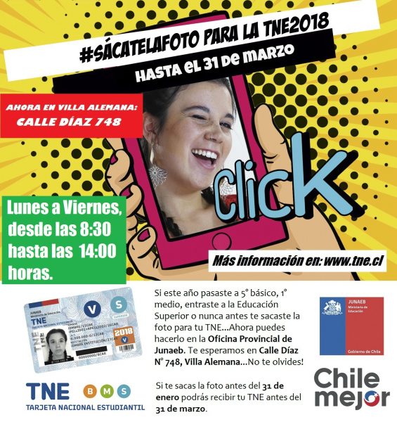 Para obtener la Tarjeta Nacional Estudiantil (TNE) lo antes posible las autoridades de Marga Marga hicieron un llamado a los estudiantes de las comunas de Quilpué, Villa Alemana, Limache y Olmué a tomarse la foto para el mencionado documento en la oficina provincial de la Junaeb, emplazada en calle Díaz 748, Villa Alemana.