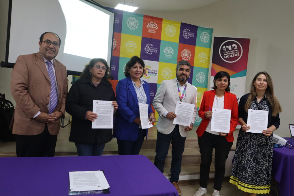 La ceremonia de firma contó con la participación de la alcaldesa de Quilpué, Valeria Melipillán, el secretario general de la Corporación Municipal de Quilpué, Jorge Muñoz, las direcciones de los establecimientos implicados, la directora de la Dirección General de Vinculación con el Medio (DGVM) UPLA, Fabiola Vilugrón Aravena, el equipo ejecutor del proyecto y concejales de la comuna.