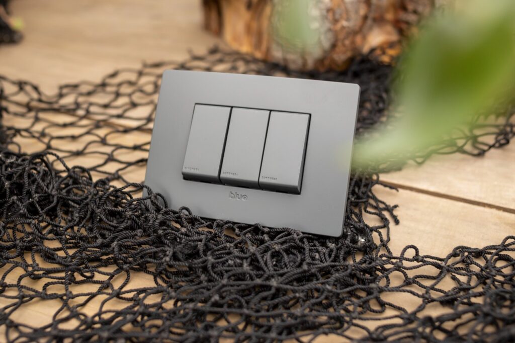 Estos datos, más una historia de vida relacionada con el mar desde siempre, hicieron que Sinthesi (empresa de la familia Marisio Solari) creara BLUE, inspirados en el mar, una serie de interruptores eléctricos sustentable hechos en base a redes que pesca, generadoras de gran cantidad de contaminación marina. En efecto, desde que aparecieron hace unos 40 años, este material resistente, ligero y fácil de reparar -cuando es desechado en un ambiente marino- puede durar cientos de años degradándose.
