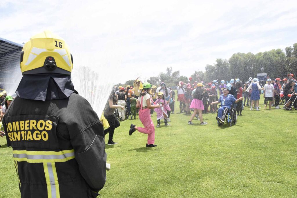 Hasta la Escuela de la Policía de Investigaciones (PDI) llegaron este jueves los integrantes de la 16° compañía de Bomberos de Santiago a refrescar la tarde de los niños y niñas de la región Metropolitana que fueron parte del “Verano Teletón”, actividad que se extenderá hasta el 14 de enero y que se realiza en todos los centros de rehabilitación desde Arica a Coyhaique.