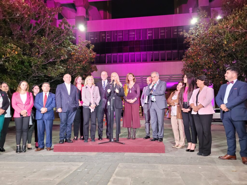 Durante la tarde de este martes, el edificio del Senado se iluminó de color rosa por la campaña del mes de la detección temprana del Cáncer de Mama que ha desplegado por todo el país Estée Lauder Companies en conjunto con la Fundación Care, fundada por Cecilia Bolocco.
