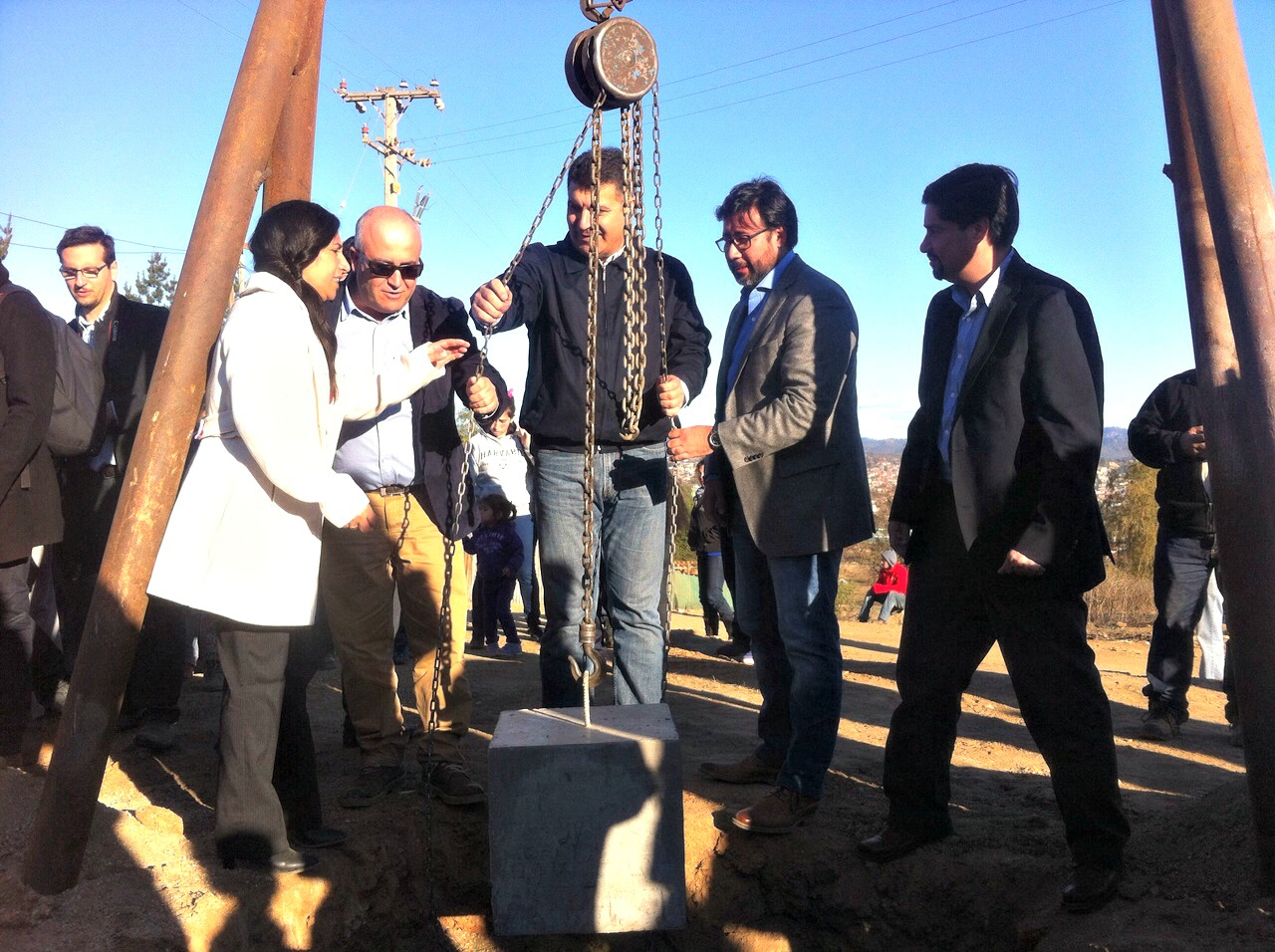 La ceremonia fue encabezada por el alcalde Mauricio Viñambres, quien junto a representantes de Serviu y del Ministerio de Vivienda y Urbanismo, colocó el primer eslabón del futuro condominio que albergará a 256 habitantes del sector, los que durante años han luchado por superar la estigmatización asociada a la conocida toma.
