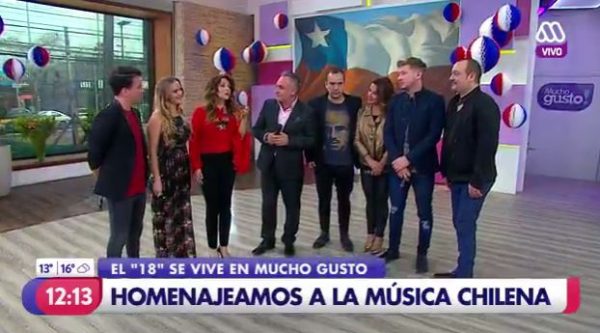 Se acercan las fiestas patrias y el matinal de Mega, “Mucho Gusto”, se ha teñido de patriotismo, colores y costumbres chilenas. Por supuesto en esta fiesta no podía faltar la música, y por eso en el matinal se reunieron varios intérpretes nacionales para realizar un emotivo tributo a nuestro folklore.