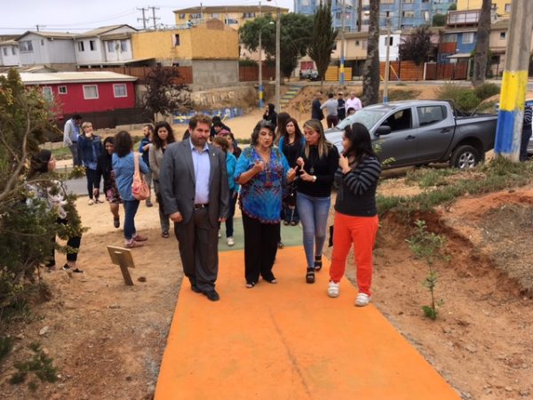 La alcaldesa Virginia Reginato junto a la seremi de salud, María Graciela Astudillo inauguró un sendero ecológico que permitió eliminar un microbasural y generar un acceso por el lado posterior al Centro Comunitario de Salud Familiar Las Palmas Chilenas -Parcela 11.