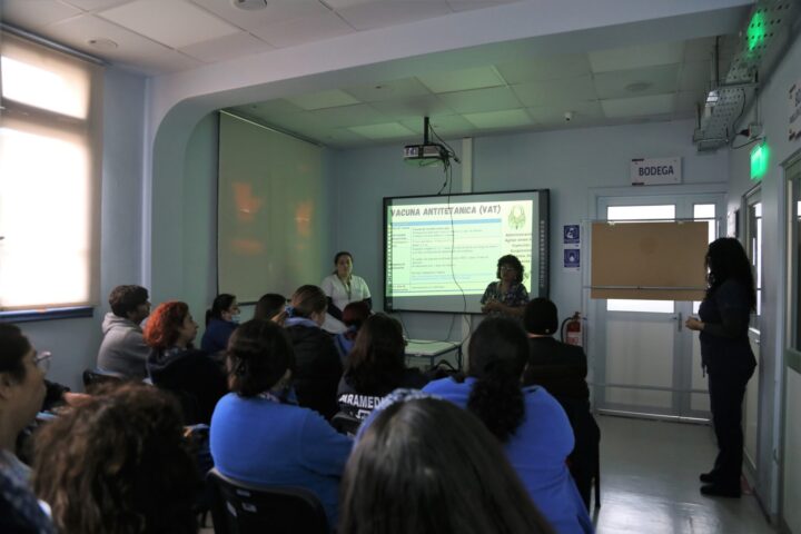 La actividad estuvo a cargo de las enfermeras supervisoras de la Unidad de Emergencia Adultos, Alejandra Jeria y de la Unidad de Epidemiología, María Pía Baeza, con el apoyo de la interna de enfermería de la Upla, Danay Zamora. La capacitación se replicó a los cuatro turnos de la urgencia para repasar los fundamentos del Programa Nacional de Inmunización (PNI), vías de administración y cadena de frío, así como los posibles errores que se pueden producir en función de esta gestión, de modo de establecer una “vacunación segura”.