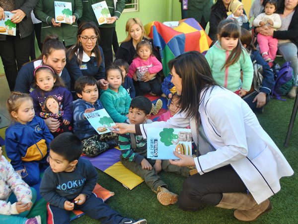 En el jardín infantil “Las palmas chilenas”, de Forestal, se llevó a cabo la entrega simbólica de una nueva edición de “Nutricuentos”, iniciativa de la Escuela de Nutrición y Dietética de Universidad Santo Tomás Viña del Mar para fomentar la alimentación saludable en la primera infancia. En esta oportunidad, la publicación ganadora del concurso organizado por la carrera fue “La gran batalla”, escrita por la alumna del colegio Liahona, Valeria Espinoza, de la cual se repartirán 500 copias a los siete establecimientos VTF de la Municipalidad de Viña del Mar.
