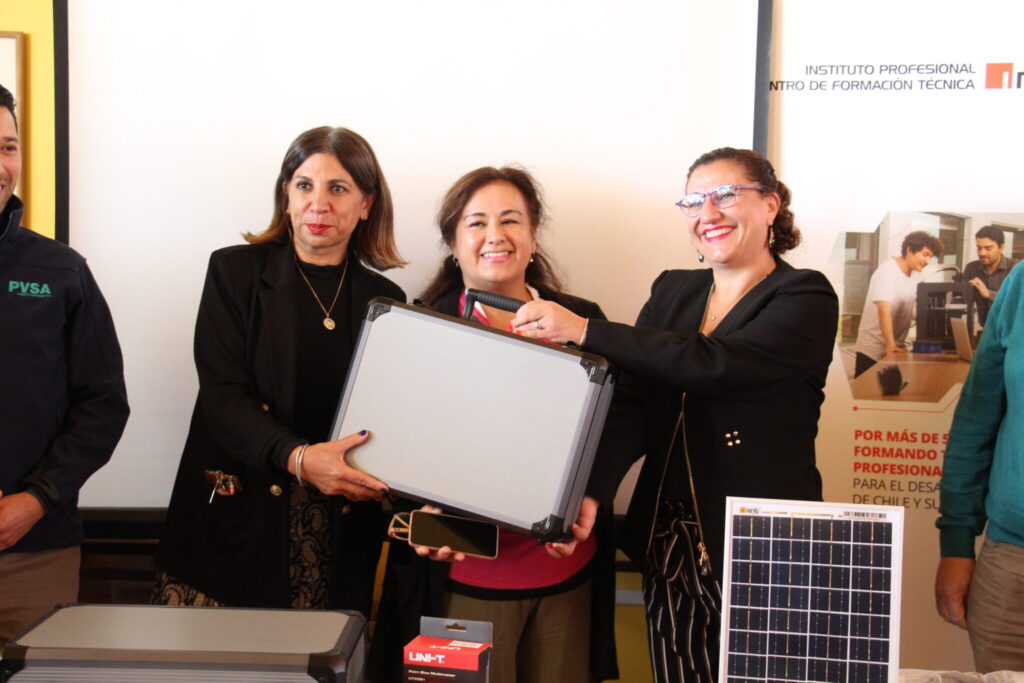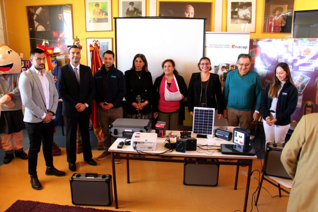 De esta forma, la directora, profesores y estudiantes de la Escuela España recibieron 4 Kit Educativos Fotovoltaicos, los cuales están pensados para que los estudiantes los utilicen en experiencias de laboratorio y puedan comprender desde la etapa escolar, en que consiste la tecnología fotovoltaica.