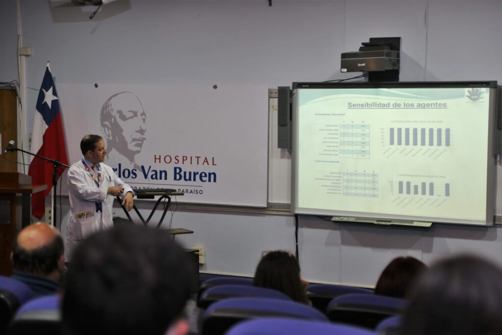 El jefe de la Unidad de Prevención y Control de IAAS del Hospital Carlos van Buren, Dr. Gonzalo Wilson, expuso los resultados de la vigilancia epidemiológica de las infecciones intrahospitalarias que se presentaron durante el año 2022 en el centro asistencial porteño. En su exposición, el infectólogo sostuvo que la institución ha mantenido una adecuada vigilancia de dichos eventos para su manejo, indicando que han observado un cambio epidemiológico, debido a la transición de la pandemia por covid a una endemia.