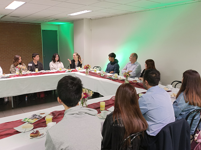 Loreto Caviedes, directora de Asuntos Estudiantiles, durante el desayuno destacó que en esta sede, que cuenta con más de 5.500 estudiantes, “estamos siempre buscando el encuentro directo, cercano y la conversación con los y las estudiantes y ese es el sello de Santo Tomás”.