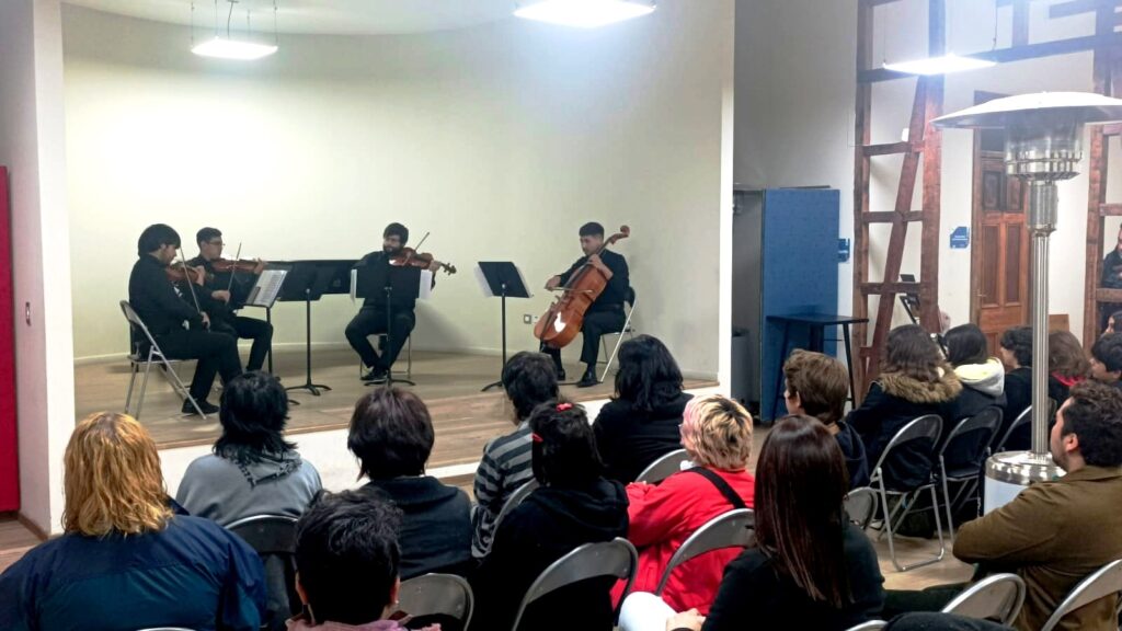 Yerko Jamet Retamal, primer violín, estudiante de Cuarto Año de la misma Carrera, indicó que “el Instituto de Música es una institución bien importante, porque es el único lugar que tenemos los músicos del área docta para poder seguir desarrollándonos. Hay muy buenos profesores, hace que se descentralice todo de Santiago y, que se den instancias como ésta, es bueno para aportar a la comunidad. En el verano también fuimos a Frutillar donde tocamos este mismo repertorio, el primer movimiento del Cuarteto, y tuvimos la instancia de conocer a mucha gente que está en la misma situación de nosotros, pero en otros lugares de Chile, y que comparten nuestras mismas aspiraciones”, destacó.