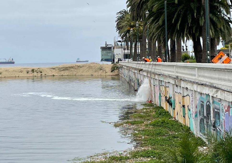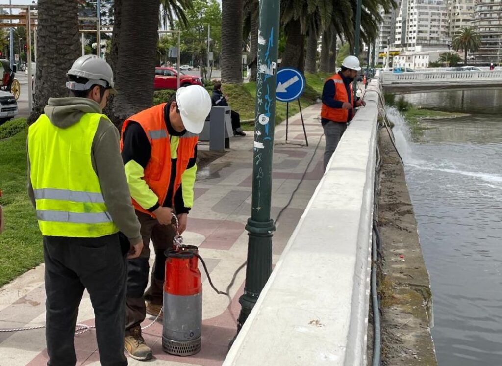 El ejecutivo agregó que “hoy las acciones se centran en medidas de mitigación, que comenzamos a implementar desde ayer y que consideran la instalación de ocho aireadores en el sector del puente Casino, para aumentar la oxigenación del agua; la disposición de siete bombas de extracción para disminuir el volumen de agua acumulada; y una serie de muestreos de calidad de agua para vigilar su evolución”.