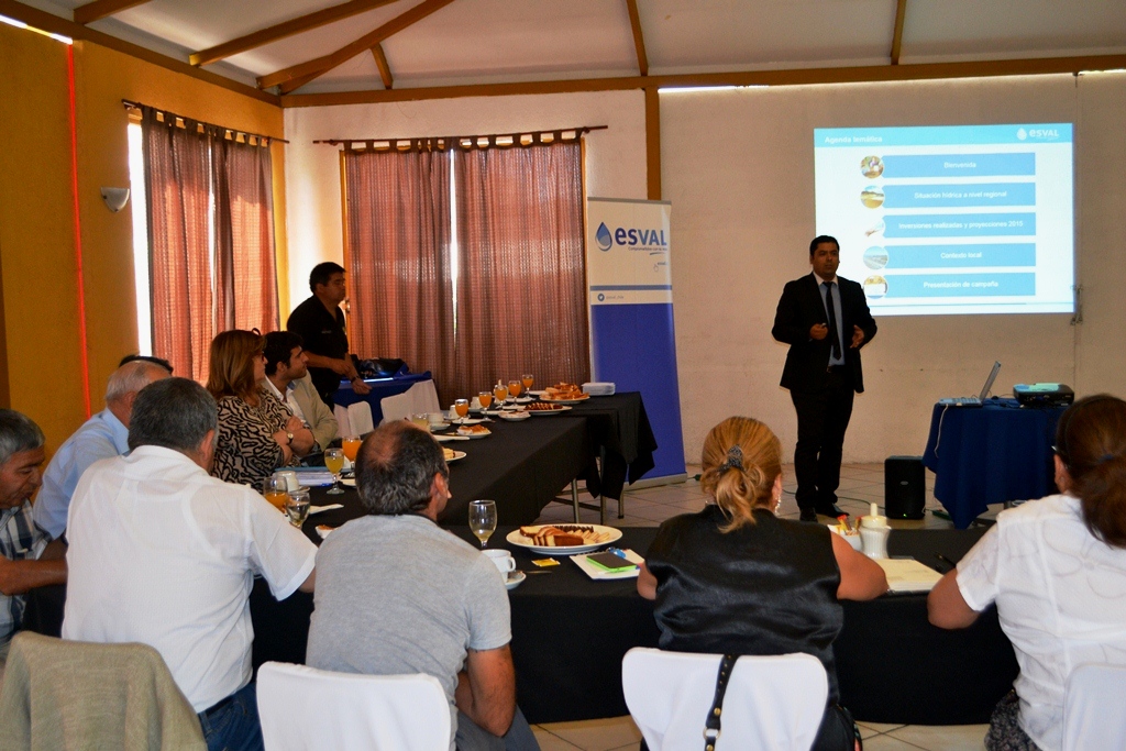 Una reunión informativa sostuvo la empresa Esval, representada por el subgerente zonal Alejandro Romero, con presidentes y dirigentes de nueve uniones comunales de las provincias de San Felipe y Los Andes, con el objetivo de informar a los vecinos sobre la situación hídrica en el Valle de Aconcagua y en la región en general.
