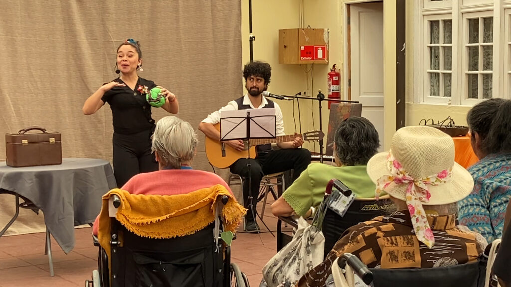 “Nos traen música, cuentos maravillosos, estoy feliz, es una actividad que hacen los institutos y nos alegran”, relata Sonia Azar, residente Hogar San Carlos de Fundación Las Rosas en Recoleta. En tanto, Paquita Vargas, quien también reside en el San Carlos, añade “tocó un autor que me encanta, me trajo mi juventud, mis hijos, esas sonrisas, volverlas a vivir, tenerlas tan cerca y tan lejos… he vuelto a vivir, estoy muy feliz”.