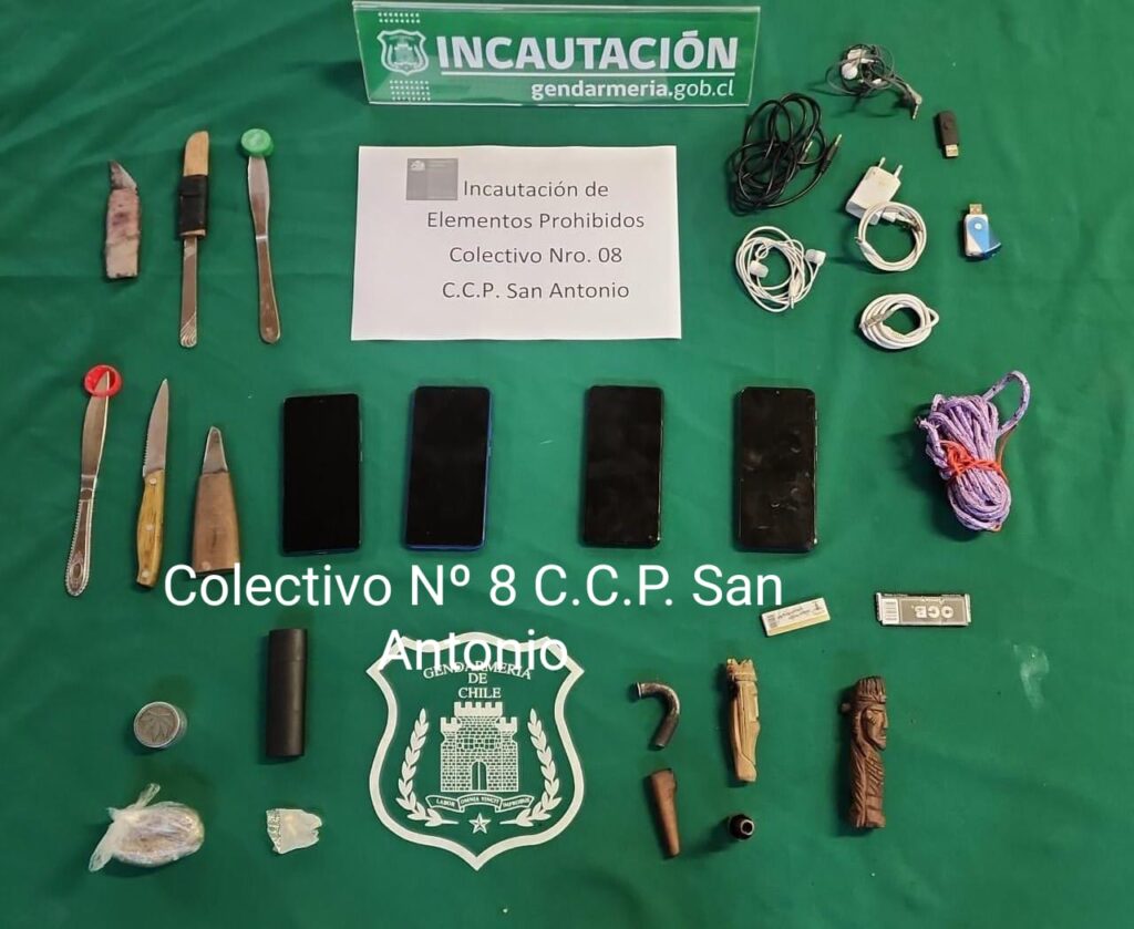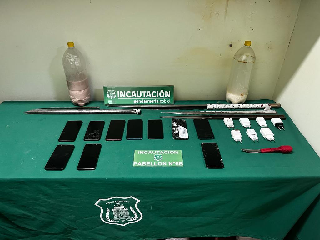 “Gracias al profesionalismo del personal nosotros logramos encontrar una gran cantidad de elementos prohibidos, como son armas blancas, licores artesanales, droga y teléfonos celulares, lo que , sin duda, va a mejorar la seguridad de estos recintos y, sobre todo, en estas fiestas de fin de año que la población penal está más efervescente”, agregó el director regional.