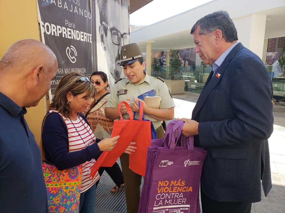 Bajo este contexto y en el marco del mes de la mujer, el Gobernador de la provincia de Quillota, Iván Cisternas Tapia, encabezó una importante campaña en Open Plaza de La Calera, junto a la Subcomisario de los servicios de Carabineros de la 7ma Comisaría de La Calera, Capitán Karla Villarroel y municipio de la comuna, entregaron a través de bolsas reciclables e informativos, para prevenir y denunciar en caso de algún hecho de violencia en contra de la mujer.