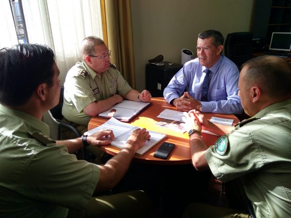 “Los saludos protocolares son parte de lo normal cuando una autoridad asume el cargo, pero hemos aprovechado esta oportunidad para comenzar inmediatamente … trabajar y direccionar algunas acciones que ha pedido el Presidente Sebastián Piñera, en cuanto al trabajo con las policías en beneficio de la seguridad ciudadana y el orden público”, dijo el Gobernador Cisternas.