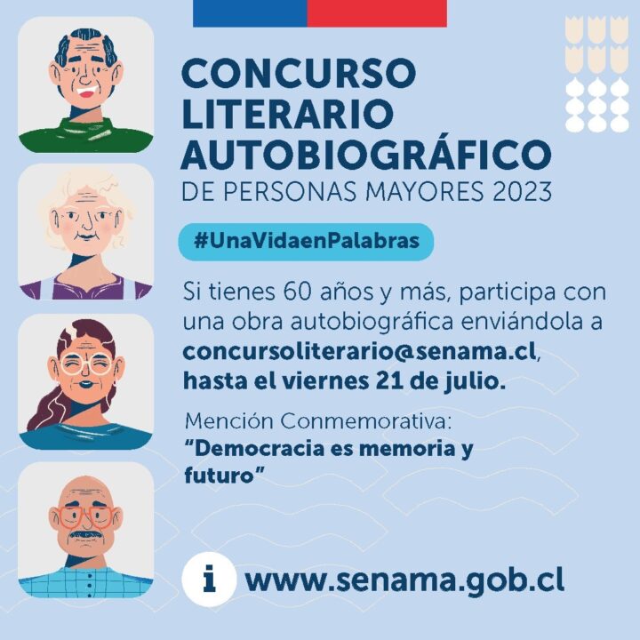 Hasta el viernes 21 de julio se están recibiendo relatos para conformar la novena edición de esta iniciativa de Senama, que lleva el lema “Una vida en palabras”, y que cuenta para este año con una mención especial en conmemoración por los 50 años del Golpe de Estado.