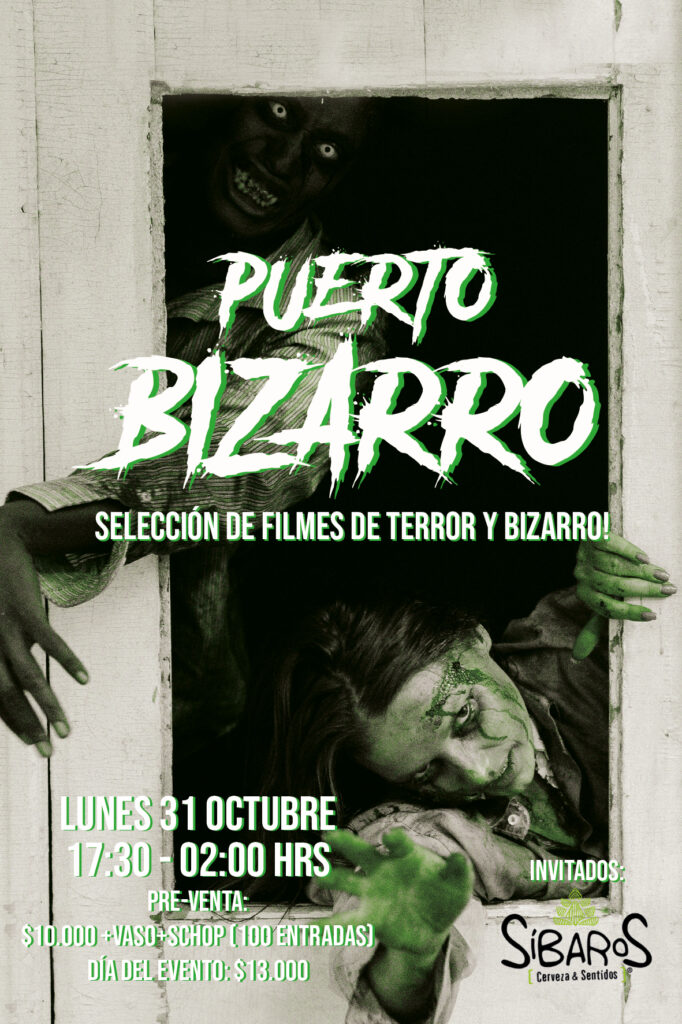 El especial de Halloween trae de regreso el clásico evento “Puerto Bizarro” con una maratón de películas sorpresas del terror más rudo y bizarro para hacer estallar esas pupilas adictas a la ansiedad, el suspenso y los escalofríos. Este evento se realizará desde las 17:00 hasta las 2:00 a.m., se trata de 9 horas consecutivas de cine con un break a las 21:30, en donde los presentes podrán compartir la nueva Cerveza INSOMNIA creada por Síbaros.