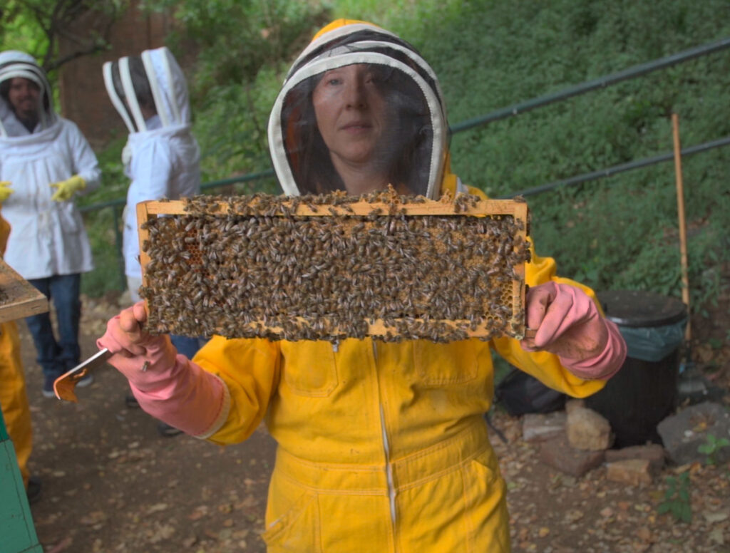 Luego se sumó a la iniciativa el jefe de carrera de Ingeniería Civil Ambiental, Daniel Ramírez; gracias a su experiencia como apicultor por más de 40 años, colaboró con la instalación del apiario en la USM, donde hoy existen seis colmenas. “La investigación la hacemos en el laboratorio y en el apiario se hacen pruebas de la cera purificada tras el proceso, verificándose si es apta y si es aceptada por las abejas; por esto es un apiario experimental”, contó la Dra. Yáñez.