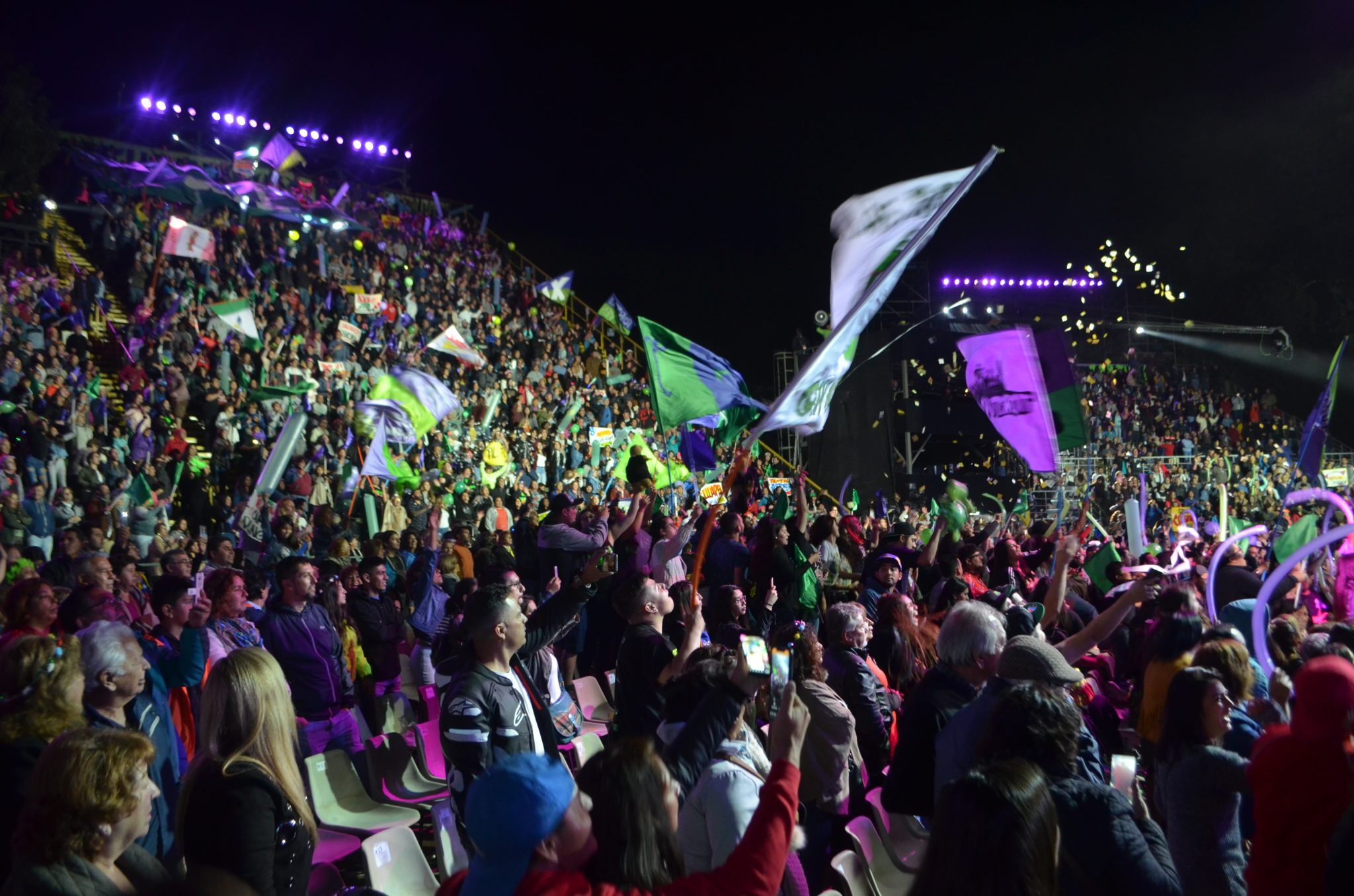 Con una fanaticada expectante se subieron al escenario del Patagual. para armar un carnaval pocas veces visto. El público se llenó de papeles volando por el aire, banderas y globos por doquier.